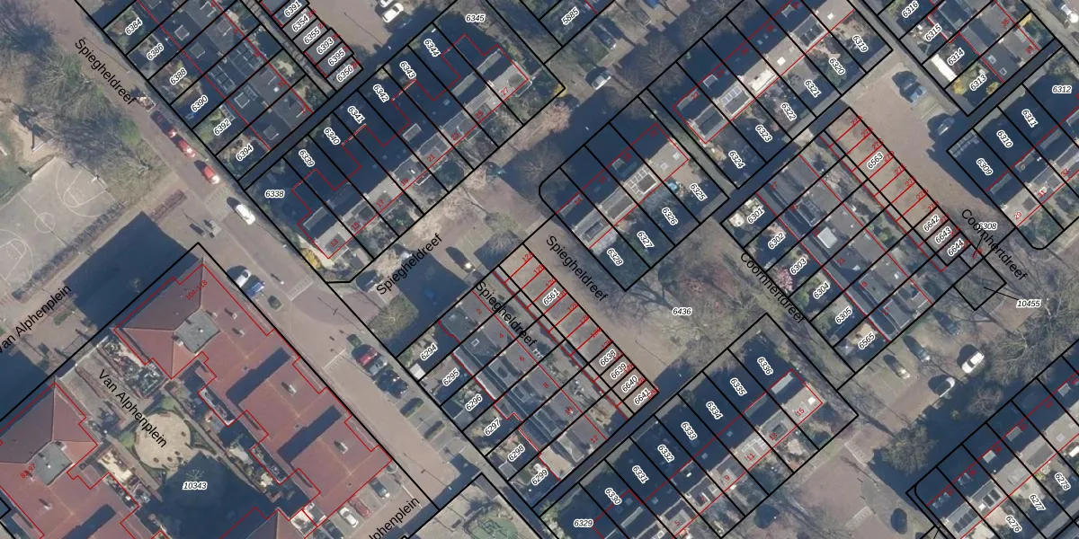 Spiegheldreef 12-B is gelegen op kadastraal perceel LDD00A6561. Deze kadastrale aanduiding is uniek en wordt gebruikt door het Kadaster om eigendomsrechten en andere zakelijke rechten vast te leggen. Het perceel maakt onderdeel uit van de kadastrale gemeente Leiderdorp.