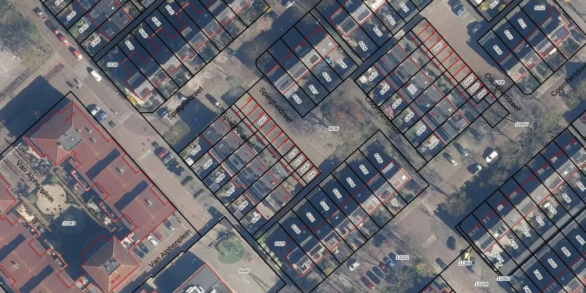 Spiegheldreef 12-H is gelegen op kadastraal perceel LDD00A6561. Deze kadastrale aanduiding is uniek en wordt gebruikt door het Kadaster om eigendomsrechten en andere zakelijke rechten vast te leggen. Het perceel maakt onderdeel uit van de kadastrale gemeente Leiderdorp.