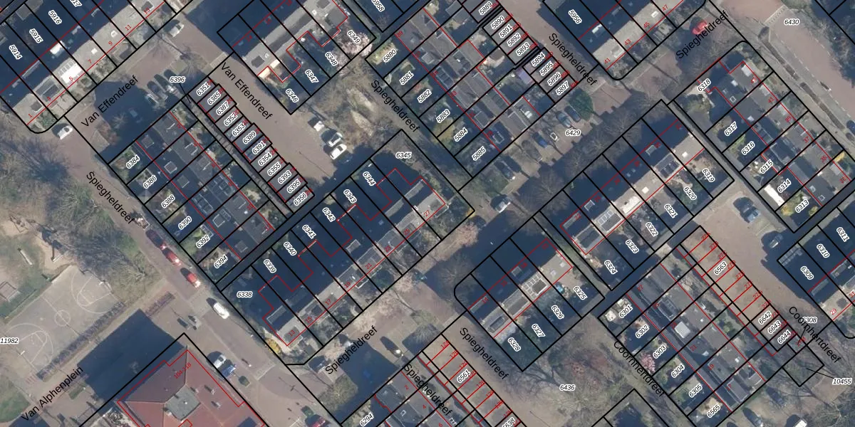 Spiegheldreef 27 is gelegen op kadastraal perceel LDD00A6345. Deze kadastrale aanduiding is uniek en wordt gebruikt door het Kadaster om eigendomsrechten en andere zakelijke rechten vast te leggen. Het perceel maakt onderdeel uit van de kadastrale gemeente Leiderdorp.