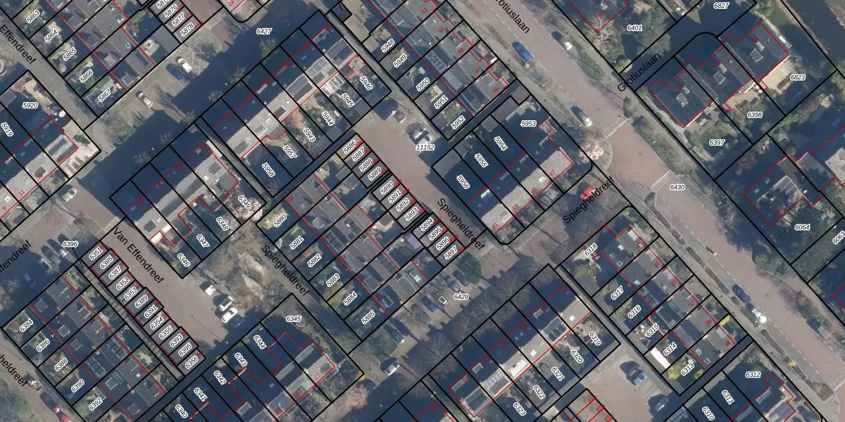 Spiegheldreef 39-E is gelegen op kadastraal perceel LDD00A5893. Deze kadastrale aanduiding is uniek en wordt gebruikt door het Kadaster om eigendomsrechten en andere zakelijke rechten vast te leggen. Het perceel maakt onderdeel uit van de kadastrale gemeente Leiderdorp.