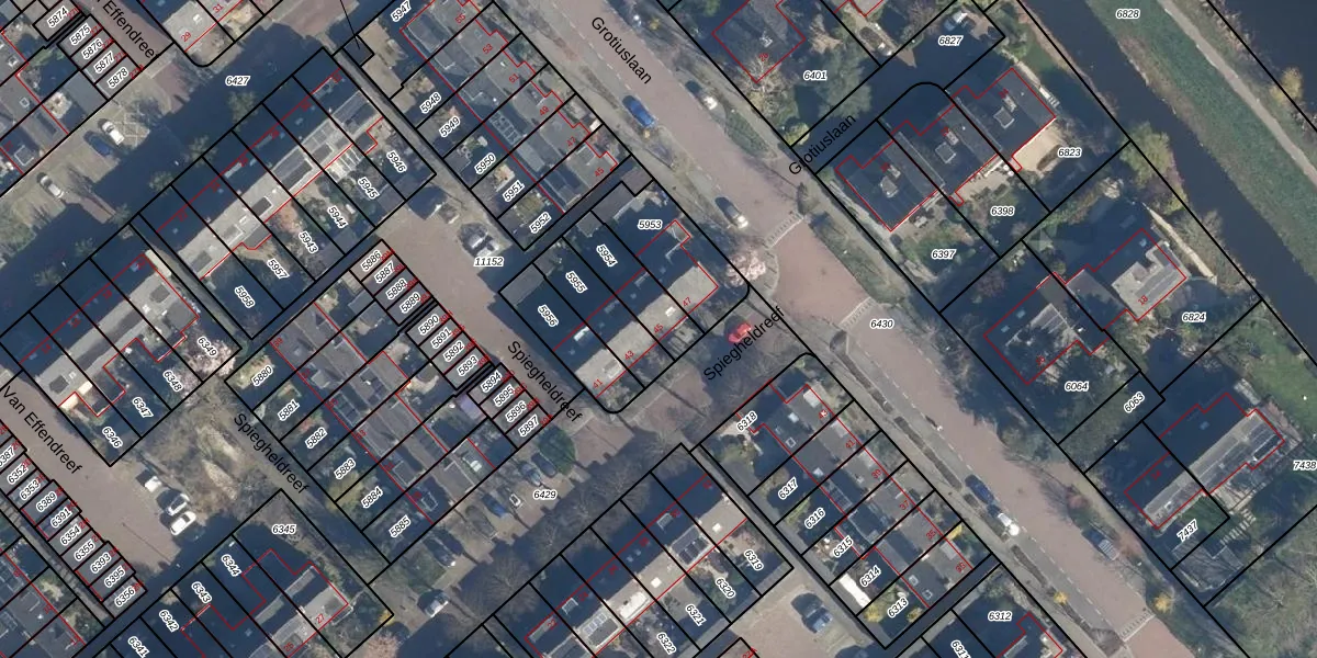 Spiegheldreef 45 is gelegen op kadastraal perceel LDD00A5954. Deze kadastrale aanduiding is uniek en wordt gebruikt door het Kadaster om eigendomsrechten en andere zakelijke rechten vast te leggen. Het perceel maakt onderdeel uit van de kadastrale gemeente Leiderdorp.