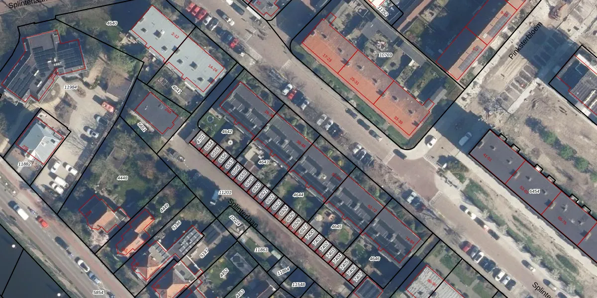 Splinterlaan 46 is gelegen op kadastraal perceel LDD00A4643. Deze kadastrale aanduiding is uniek en wordt gebruikt door het Kadaster om eigendomsrechten en andere zakelijke rechten vast te leggen. Het perceel maakt onderdeel uit van de kadastrale gemeente Leiderdorp.