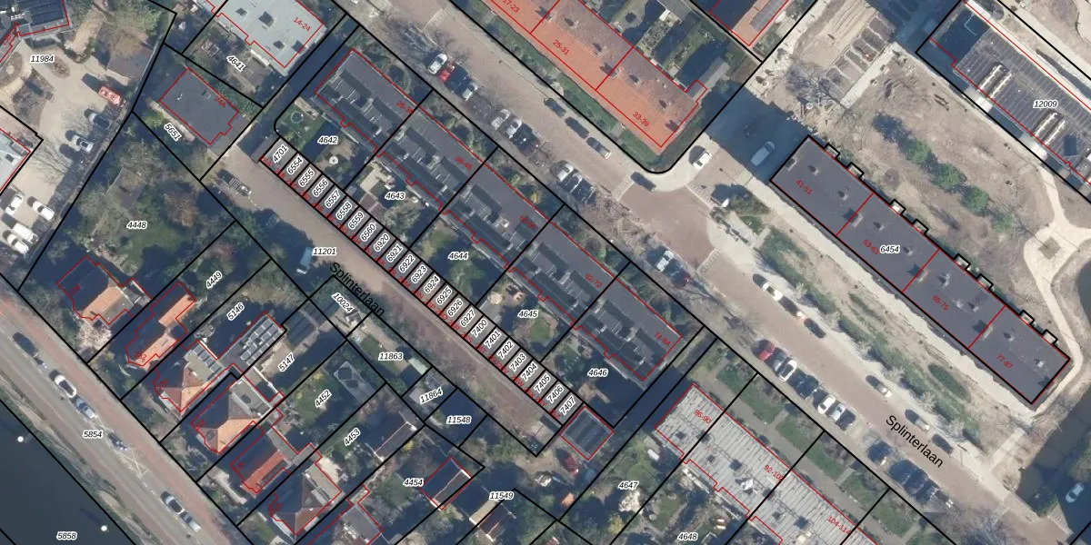Splinterlaan 66 is gelegen op kadastraal perceel LDD00A4645. Deze kadastrale aanduiding is uniek en wordt gebruikt door het Kadaster om eigendomsrechten en andere zakelijke rechten vast te leggen. Het perceel maakt onderdeel uit van de kadastrale gemeente Leiderdorp.