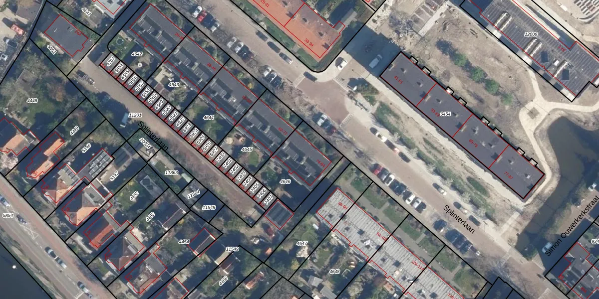 Splinterlaan 76 is gelegen op kadastraal perceel LDD00A4646. Deze kadastrale aanduiding is uniek en wordt gebruikt door het Kadaster om eigendomsrechten en andere zakelijke rechten vast te leggen. Het perceel maakt onderdeel uit van de kadastrale gemeente Leiderdorp.
