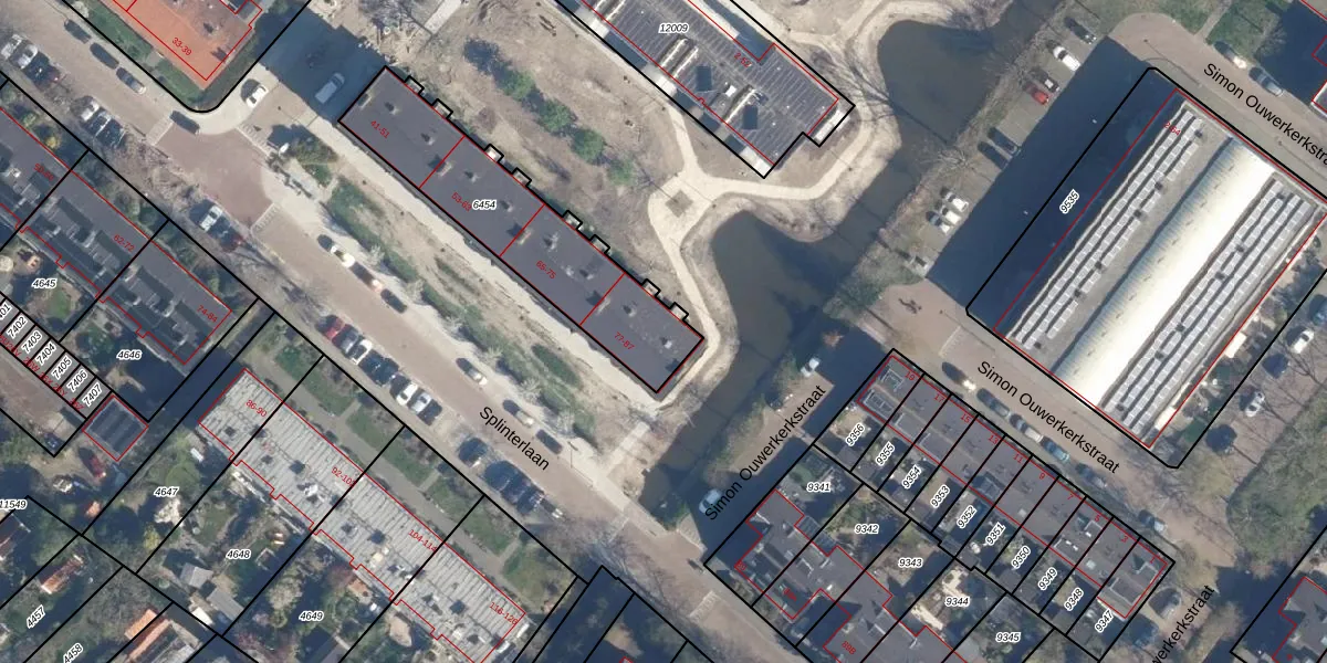 Splinterlaan 87 is gelegen op kadastraal perceel LDD00A6454. Deze kadastrale aanduiding is uniek en wordt gebruikt door het Kadaster om eigendomsrechten en andere zakelijke rechten vast te leggen. Het perceel maakt onderdeel uit van de kadastrale gemeente Leiderdorp.