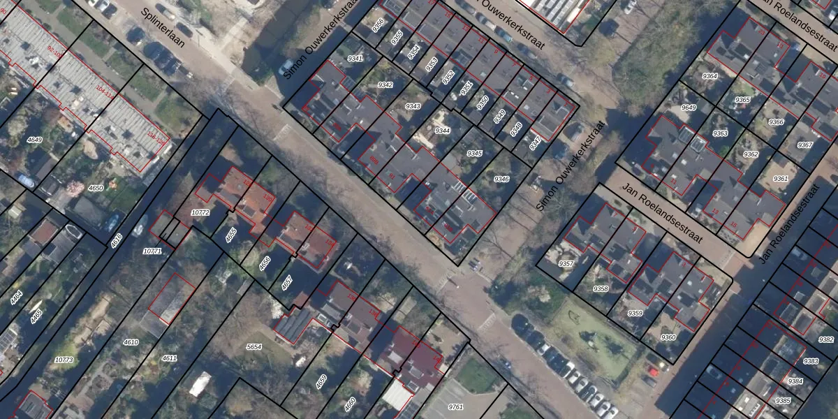 Splinterlaan 91-A is gelegen op kadastraal perceel LDD00A9345. Deze kadastrale aanduiding is uniek en wordt gebruikt door het Kadaster om eigendomsrechten en andere zakelijke rechten vast te leggen. Het perceel maakt onderdeel uit van de kadastrale gemeente Leiderdorp.
