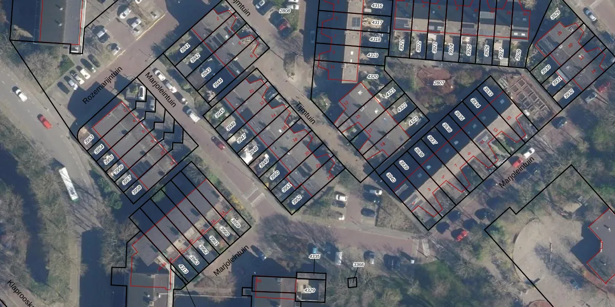 Het perceel waarop Tijmtuin 20 staat heeft een oppervlakte van 127 m². Dit is een middelgroot perceel. De perceeloppervlakte wordt geregistreerd door het Kadaster. Gedetailleerde informatie over de maten van dit perceel kunt u vinden in het rapport Kadastrale kaart met maatvoering van Tijmtuin 20.
