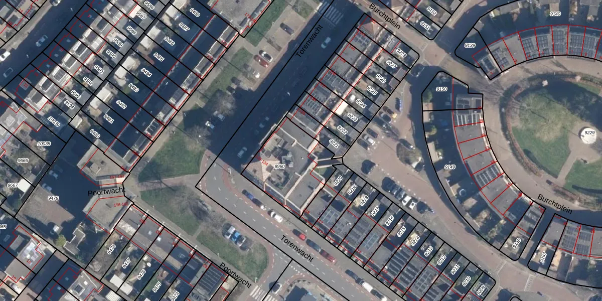 Het perceel waarop het adres ligt is LDD00-A-8960. De afkorting 'LDD00' staat voor kadastrale gemeente Leiderdorp. Het perceel is kleiner dan gemiddeld in Leiderdorp. Het perceel is 578 m² groot, terwijl het gemiddelde ligt op 1285,95 m². Het grootste perceel in de kadastrale gemeente is 43,4 ha. Het kleinste perceel heeft een oppervlakte van 0 m². Er zijn 16 adressen aanwezig op het perceel. In de Basisregistratie Kadaster (BRK) werden de grenzen van het perceel geregistreerd op 01-02-2002.