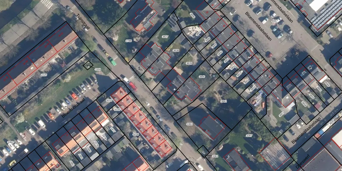 Tuinstraat 3-C is gelegen op kadastraal perceel LDD00B3839. Deze kadastrale aanduiding is uniek en wordt gebruikt door het Kadaster om eigendomsrechten en andere zakelijke rechten vast te leggen. Het perceel maakt onderdeel uit van de kadastrale gemeente Leiderdorp.
