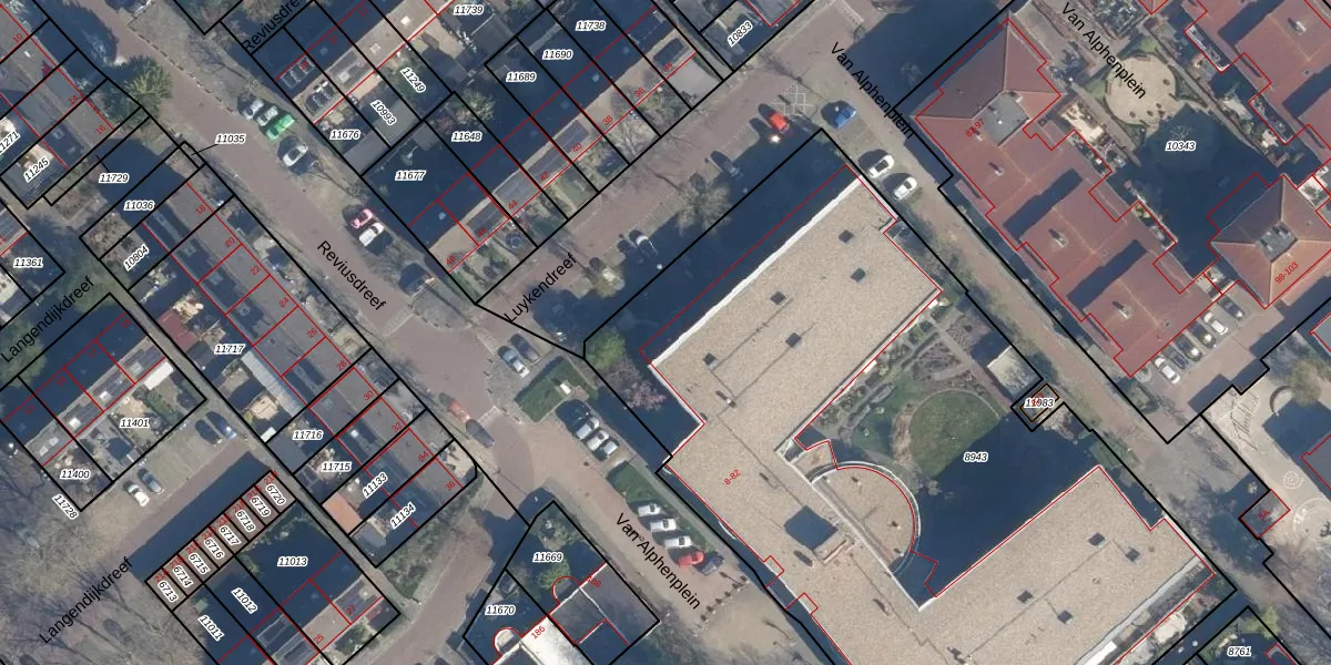 Van Alphenplein 11 is gelegen op kadastraal perceel LDD00A8943. Deze kadastrale aanduiding is uniek en wordt gebruikt door het Kadaster om eigendomsrechten en andere zakelijke rechten vast te leggen. Het perceel maakt onderdeel uit van de kadastrale gemeente Leiderdorp.