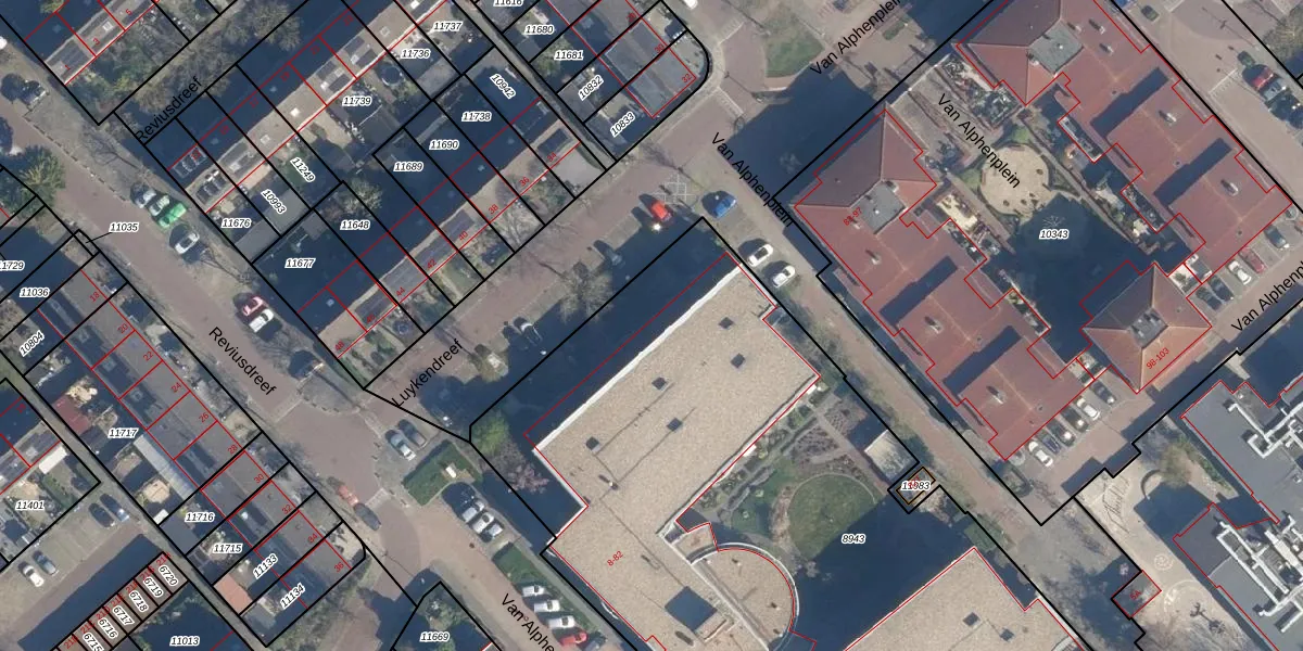 Het perceel waarop Van Alphenplein 14 staat heeft een oppervlakte van 4745 m². Dit is een zeer groot perceel. De perceeloppervlakte wordt geregistreerd door het Kadaster. Gedetailleerde informatie over de maten van dit perceel kunt u vinden in het rapport Kadastrale kaart met maatvoering van Van Alphenplein 14.