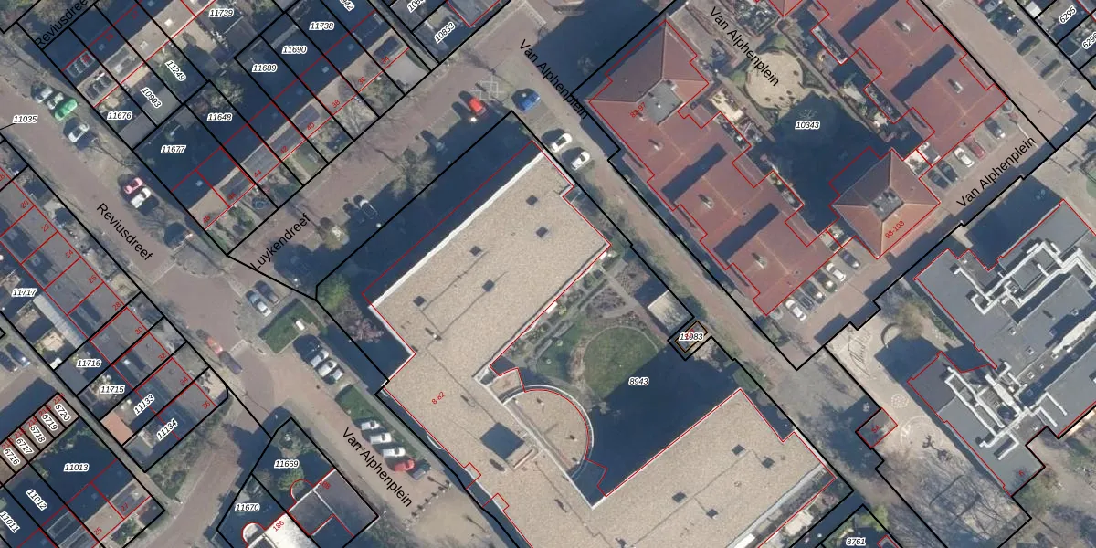 Van Alphenplein 43 is gelegen op kadastraal perceel LDD00A8943. Deze kadastrale aanduiding is uniek en wordt gebruikt door het Kadaster om eigendomsrechten en andere zakelijke rechten vast te leggen. Het perceel maakt onderdeel uit van de kadastrale gemeente Leiderdorp.