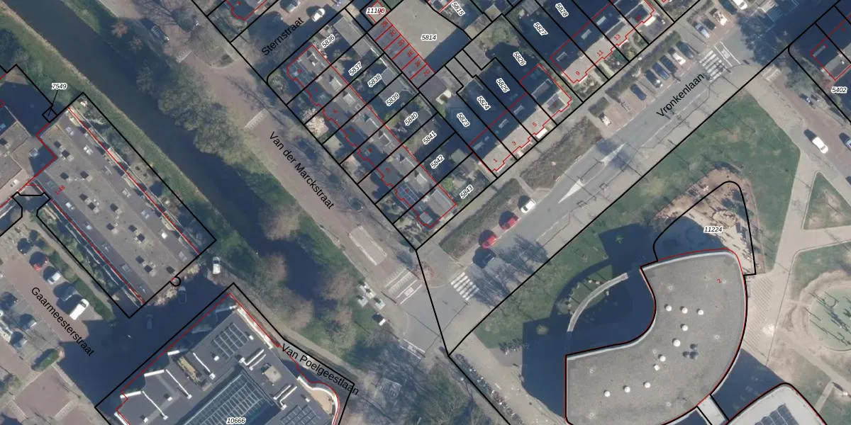Het perceel waarop Van der Marckstraat 1 staat heeft een oppervlakte van 216 m². Dit is een middelgroot perceel. De perceeloppervlakte wordt geregistreerd door het Kadaster. Gedetailleerde informatie over de maten van dit perceel kunt u vinden in het rapport Kadastrale kaart met maatvoering van Van der Marckstraat 1.