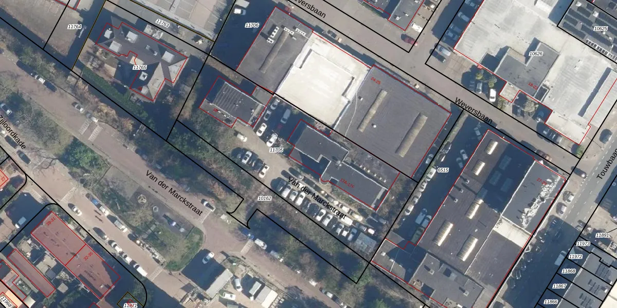 Het perceel waarop Van der Marckstraat 17-A staat heeft een oppervlakte van 2200 m². Dit is een zeer groot perceel. De perceeloppervlakte wordt geregistreerd door het Kadaster. Gedetailleerde informatie over de maten van dit perceel kunt u vinden in het rapport Kadastrale kaart met maatvoering van Van der Marckstraat 17-A.