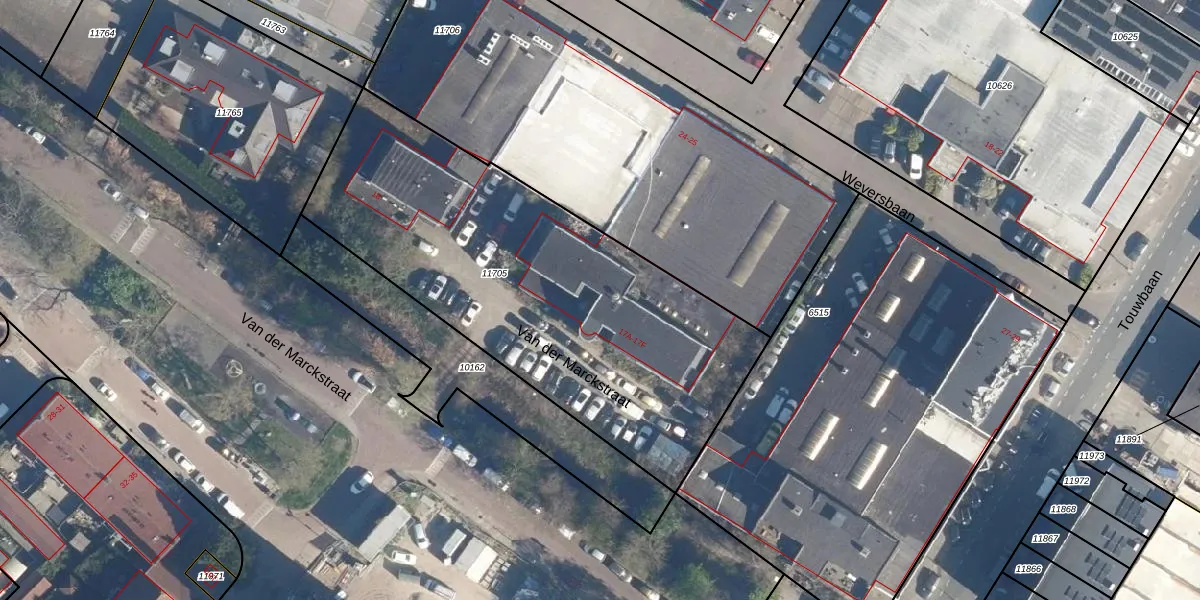 Het perceel waarop Van der Marckstraat 17-C staat heeft een oppervlakte van 2200 m². Dit is een zeer groot perceel. De perceeloppervlakte wordt geregistreerd door het Kadaster. Gedetailleerde informatie over de maten van dit perceel kunt u vinden in het rapport Kadastrale kaart met maatvoering van Van der Marckstraat 17-C.
