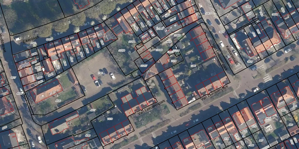 Gebruik de zoekbalk of klik op een perceel voor informatie over de adressen binnen dit perceel.