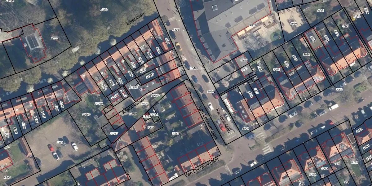 Van Leeuwenpark 43 is gelegen op kadastraal perceel LDD00A7380. Deze kadastrale aanduiding is uniek en wordt gebruikt door het Kadaster om eigendomsrechten en andere zakelijke rechten vast te leggen. Het perceel maakt onderdeel uit van de kadastrale gemeente Leiderdorp.