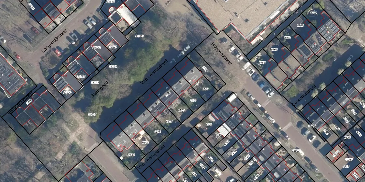 Van Lennepdreef 56 is gelegen op kadastraal perceel LDD00A6177. Deze kadastrale aanduiding is uniek en wordt gebruikt door het Kadaster om eigendomsrechten en andere zakelijke rechten vast te leggen. Het perceel maakt onderdeel uit van de kadastrale gemeente Leiderdorp.