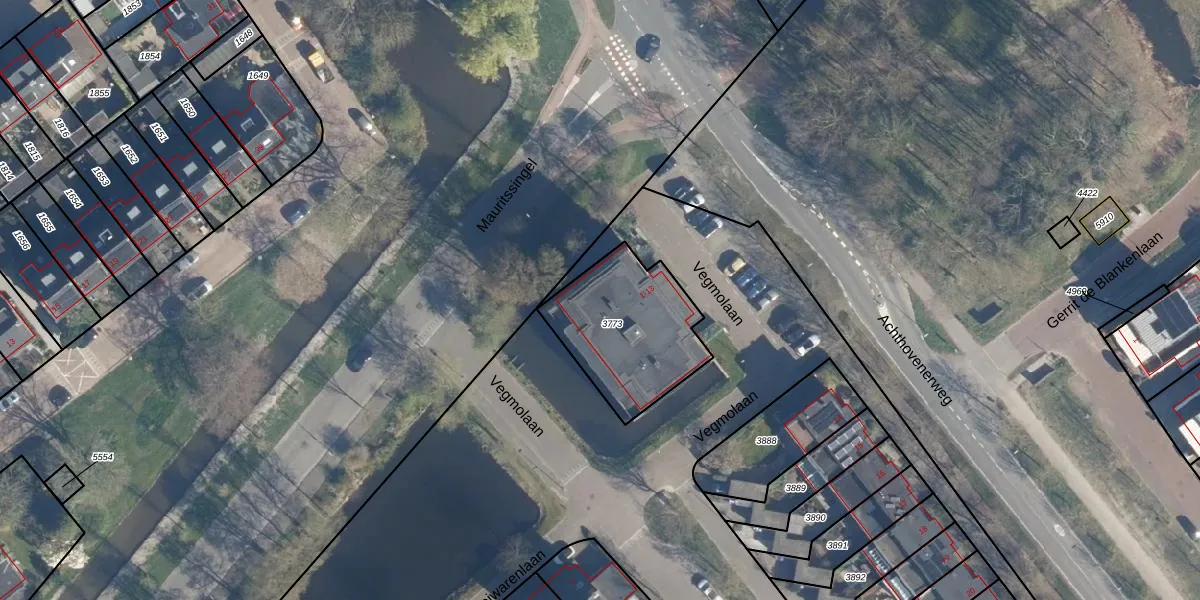 Vegmolaan 9 is gelegen op kadastraal perceel LDD00B3773. Deze kadastrale aanduiding is uniek en wordt gebruikt door het Kadaster om eigendomsrechten en andere zakelijke rechten vast te leggen. Het perceel maakt onderdeel uit van de kadastrale gemeente Leiderdorp.