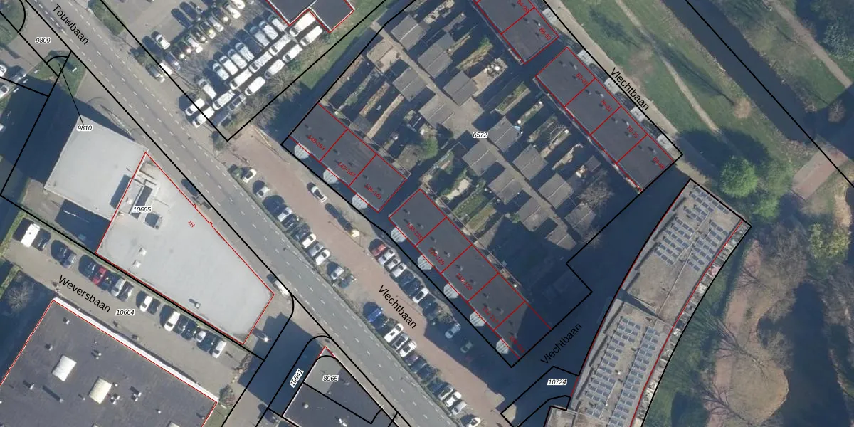 Het perceel waarop Vlechtbaan 132 staat heeft een oppervlakte van 4933 m². Dit is een zeer groot perceel. De perceeloppervlakte wordt geregistreerd door het Kadaster. Gedetailleerde informatie over de maten van dit perceel kunt u vinden in het rapport Kadastrale kaart met maatvoering van Vlechtbaan 132.