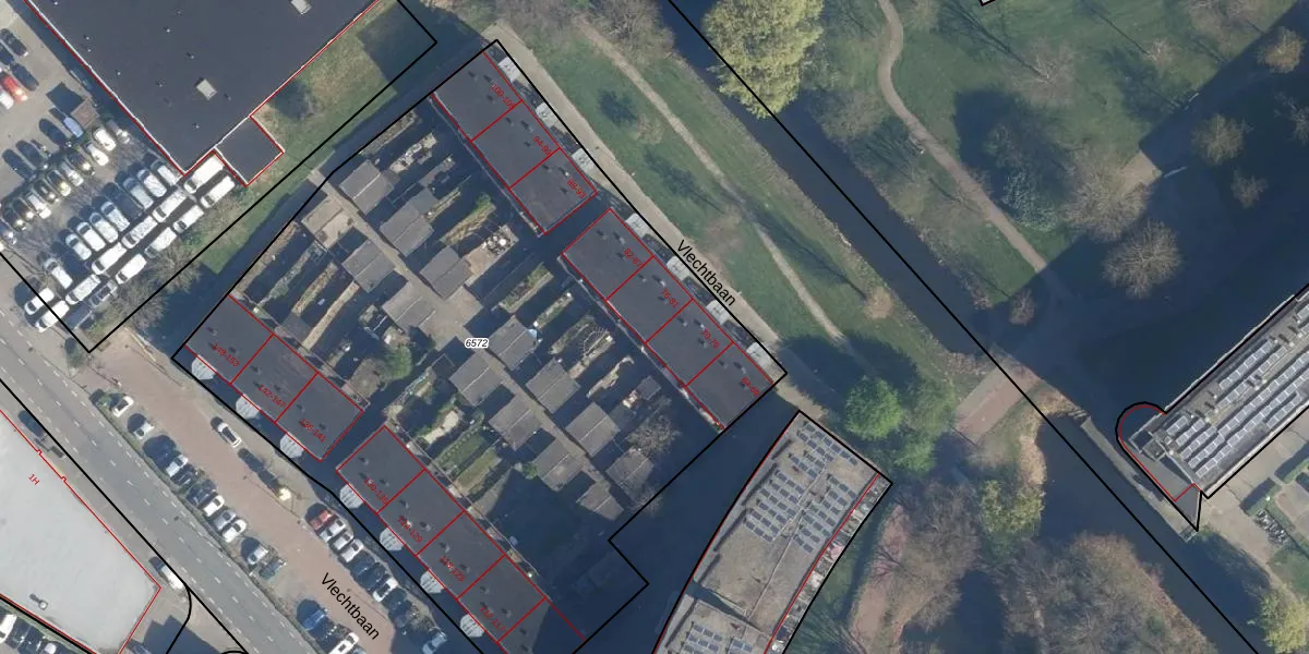 Het perceel waarop Vlechtbaan 78 staat heeft een oppervlakte van 4933 m². Dit is een zeer groot perceel. De perceeloppervlakte wordt geregistreerd door het Kadaster. Gedetailleerde informatie over de maten van dit perceel kunt u vinden in het rapport Kadastrale kaart met maatvoering van Vlechtbaan 78.