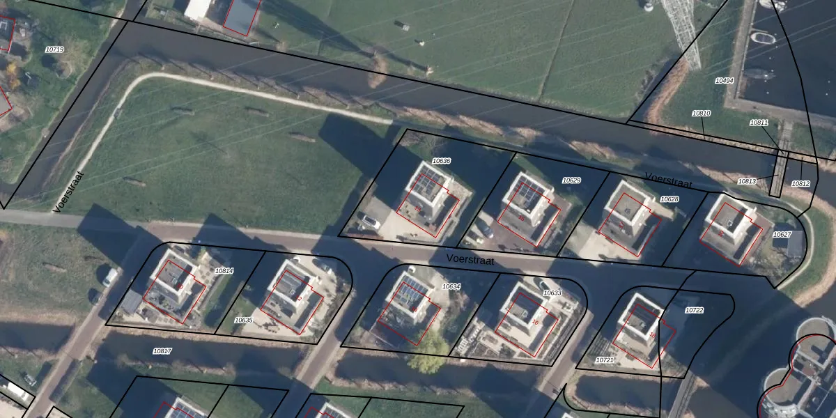 Het perceel waarop Voerstraat 13 staat heeft een oppervlakte van 725 m². Dit is een groot perceel. De perceeloppervlakte wordt geregistreerd door het Kadaster. Gedetailleerde informatie over de maten van dit perceel kunt u vinden in het rapport Kadastrale kaart met maatvoering van Voerstraat 13.