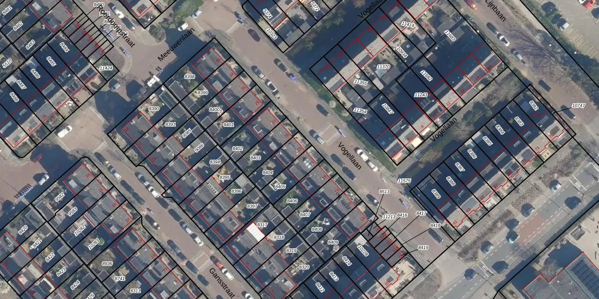 Vogellaan 23 is gelegen op kadastraal perceel LDD00A8404. Deze kadastrale aanduiding is uniek en wordt gebruikt door het Kadaster om eigendomsrechten en andere zakelijke rechten vast te leggen. Het perceel maakt onderdeel uit van de kadastrale gemeente Leiderdorp.