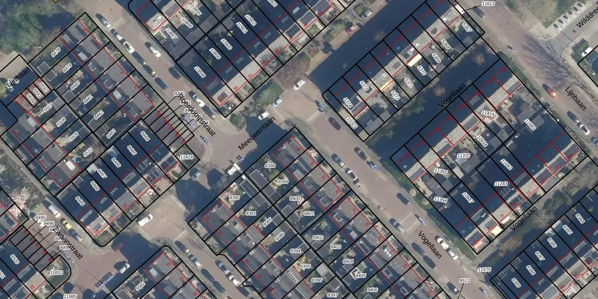 Gebruik de zoekbalk of klik op een perceel voor informatie over de adressen binnen dit perceel.