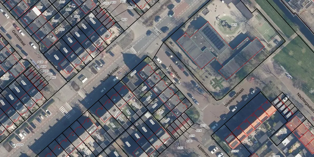 Vogellaan 9 is gelegen op kadastraal perceel LDD00A8372. Deze kadastrale aanduiding is uniek en wordt gebruikt door het Kadaster om eigendomsrechten en andere zakelijke rechten vast te leggen. Het perceel maakt onderdeel uit van de kadastrale gemeente Leiderdorp.