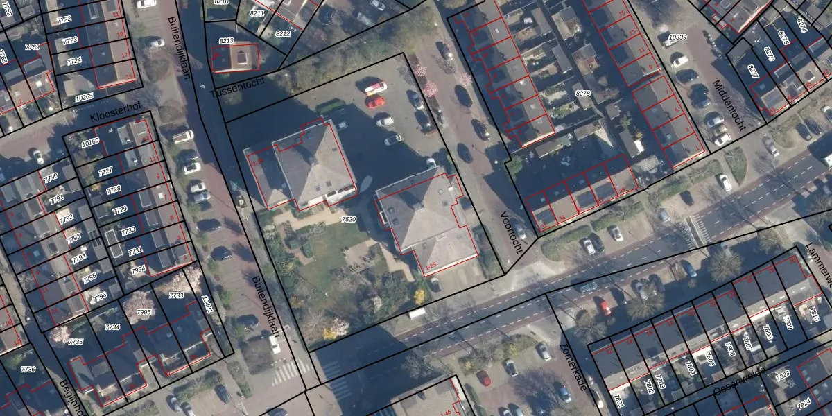 Het adres is gelegen op perceel 7520 in de sectie A en de kadastrale gemeente Leiderdorp. De kadastrale aanduiding is aldus LDD00-A-7520. Het perceel is met 2863 m² relatief groot. Het gemiddelde ligt in de kadastrale gemeente Leiderdorp op 1289,87 m². De grootste perceeloppervlakte in de kadastrale gemeente is 43,4 ha. De kleinste oppervlakte bedraagt 0 m². Op het perceel liggen in totaal 44 adressen. In de Basisregistratie Kadaster (BRK) werden de grenzen van het perceel geregistreerd op 29-03-2004.