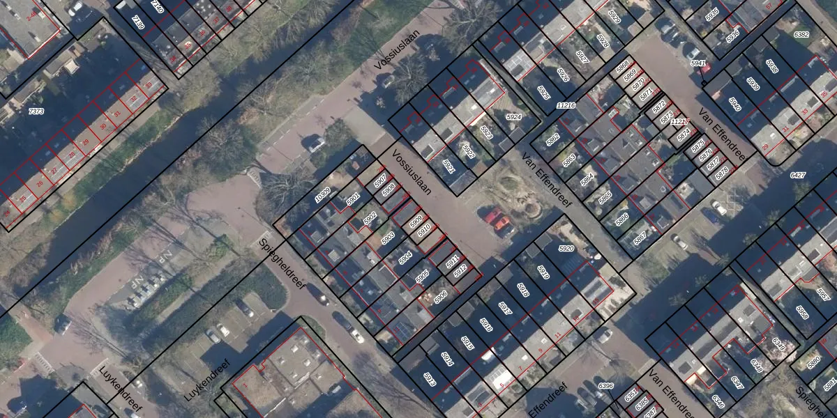 Het perceel waarop het adres ligt is LDD00-A-5903. De afkorting 'LDD00' staat voor kadastrale gemeente Leiderdorp. De gemiddelde perceelgrootte in Leiderdorp is 1289,87 m². Dit perceel is kleiner: de perceeloppervlakte bedraagt 162 m². De grootste perceeloppervlakte in de kadastrale gemeente is 43,4 ha. De kleinste oppervlakte bedraagt 0 m². Op het perceel zijn 2 adressen aanwezig. In de Basisregistratie Kadaster (BRK) werden de grenzen van het perceel geregistreerd op 25-06-2004.