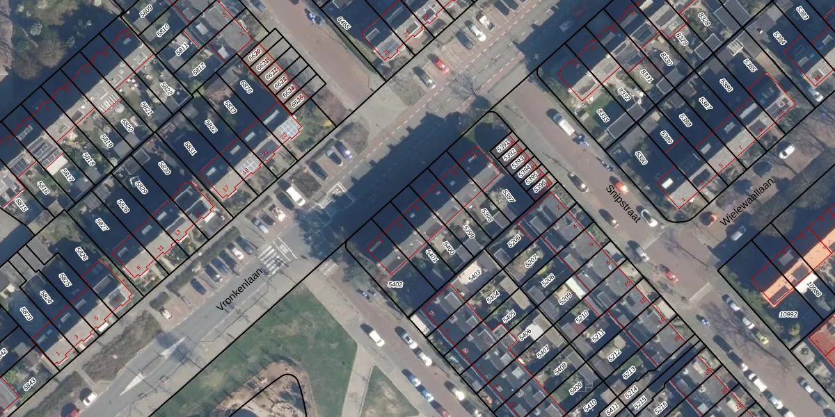 Vronkenlaan 6 is gelegen op kadastraal perceel LDD00A5400. Deze kadastrale aanduiding is uniek en wordt gebruikt door het Kadaster om eigendomsrechten en andere zakelijke rechten vast te leggen. Het perceel maakt onderdeel uit van de kadastrale gemeente Leiderdorp.