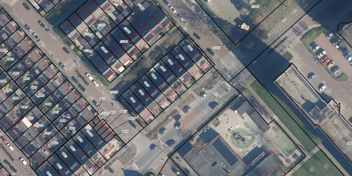 Gebruik de zoekbalk of klik op een perceel voor informatie over de adressen binnen dit perceel.