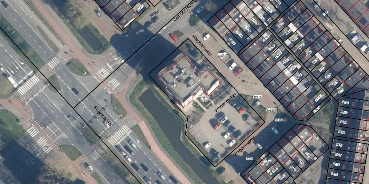 Het perceel waarop Wagenmaker 16 staat heeft een oppervlakte van 2004 m². Dit is een zeer groot perceel. De perceeloppervlakte wordt geregistreerd door het Kadaster. Gedetailleerde informatie over de maten van dit perceel kunt u vinden in het rapport Kadastrale kaart met maatvoering van Wagenmaker 16.