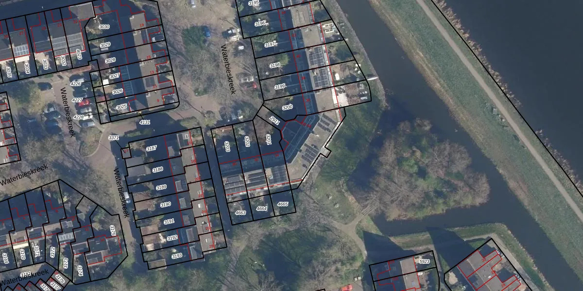 Het perceel waarop Waterbieskreek 50 staat heeft een oppervlakte van 380 m². Dit is een groot perceel. De perceeloppervlakte wordt geregistreerd door het Kadaster. Gedetailleerde informatie over de maten van dit perceel kunt u vinden in het rapport Kadastrale kaart met maatvoering van Waterbieskreek 50.