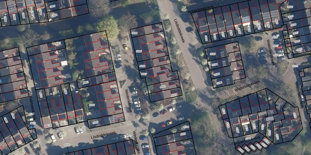 Wederikkreek 13 is gelegen op kadastraal perceel LDD00B5057. Deze kadastrale aanduiding is uniek en wordt gebruikt door het Kadaster om eigendomsrechten en andere zakelijke rechten vast te leggen. Het perceel maakt onderdeel uit van de kadastrale gemeente Leiderdorp.