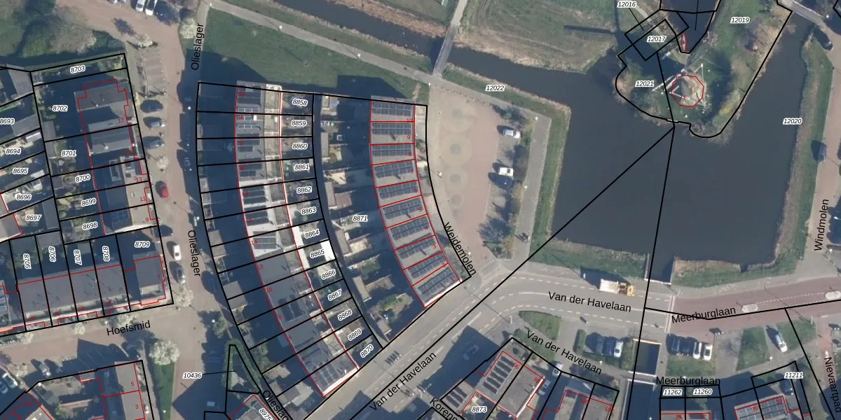 Het perceel waarop Weidemolen 5 staat heeft een oppervlakte van 1432 m². Dit is een zeer groot perceel. De perceeloppervlakte wordt geregistreerd door het Kadaster. Gedetailleerde informatie over de maten van dit perceel kunt u vinden in het rapport Kadastrale kaart met maatvoering van Weidemolen 5.