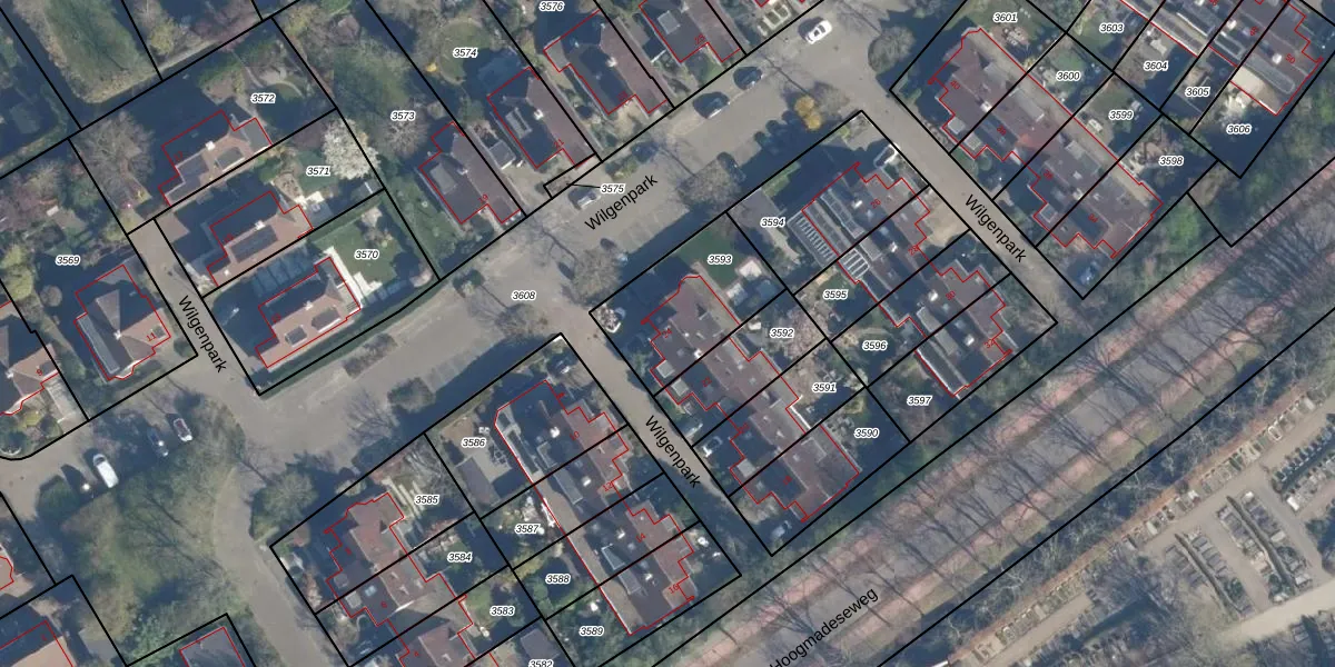 Het perceel waarop Wilgenpark 24 staat heeft een oppervlakte van 407 m². Dit is een groot perceel. De perceeloppervlakte wordt geregistreerd door het Kadaster. Gedetailleerde informatie over de maten van dit perceel kunt u vinden in het rapport Kadastrale kaart met maatvoering van Wilgenpark 24.
