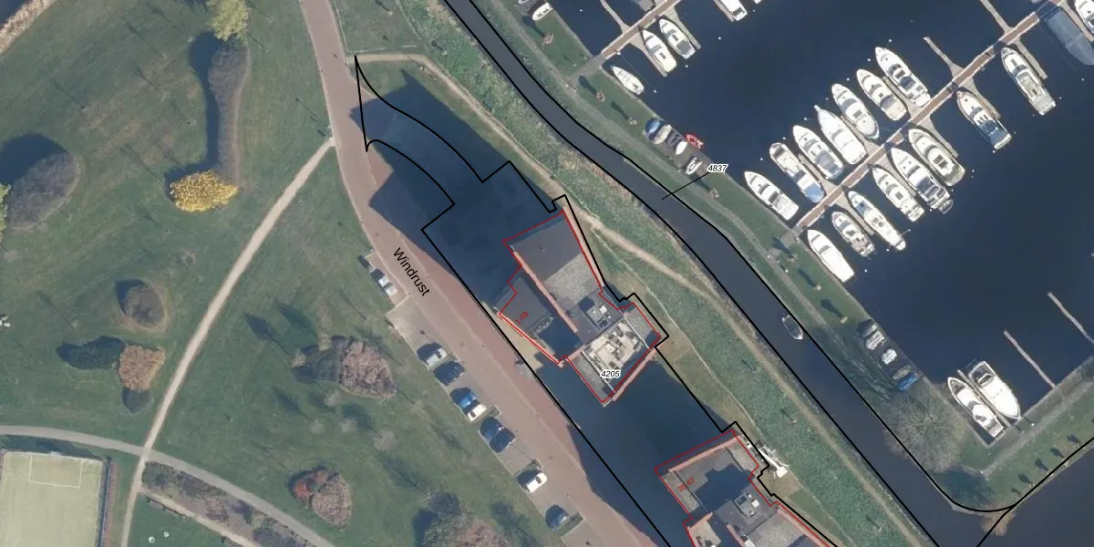Het perceel waarop Windrust 23 staat heeft een oppervlakte van 2242 m². Dit is een zeer groot perceel. De perceeloppervlakte wordt geregistreerd door het Kadaster. Gedetailleerde informatie over de maten van dit perceel kunt u vinden in het rapport Kadastrale kaart met maatvoering van Windrust 23.