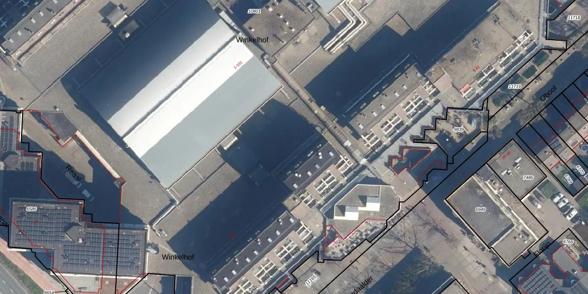 Het perceel waarop Winkelhof 11 staat heeft een oppervlakte van 2,4 ha. Dit is een zeer groot perceel. De perceeloppervlakte wordt geregistreerd door het Kadaster. Gedetailleerde informatie over de maten van dit perceel kunt u vinden in het rapport Kadastrale kaart met maatvoering van Winkelhof 11.