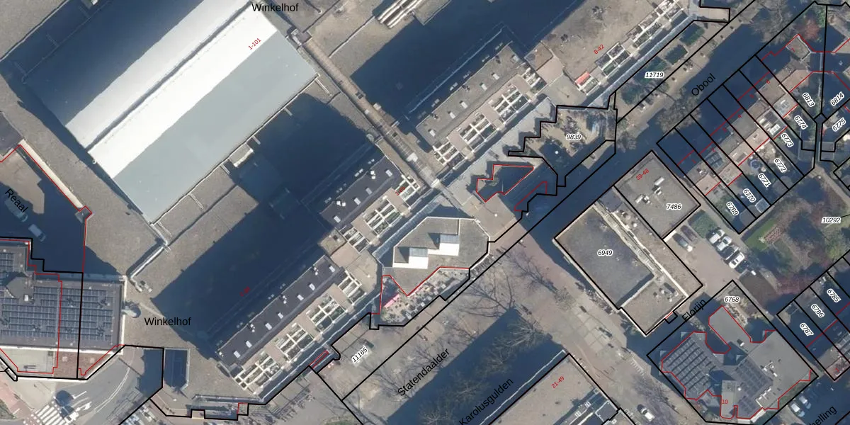 Het perceel waarop Winkelhof 15 staat heeft een oppervlakte van 2,4 ha. Dit is een zeer groot perceel. De perceeloppervlakte wordt geregistreerd door het Kadaster. Gedetailleerde informatie over de maten van dit perceel kunt u vinden in het rapport Kadastrale kaart met maatvoering van Winkelhof 15.