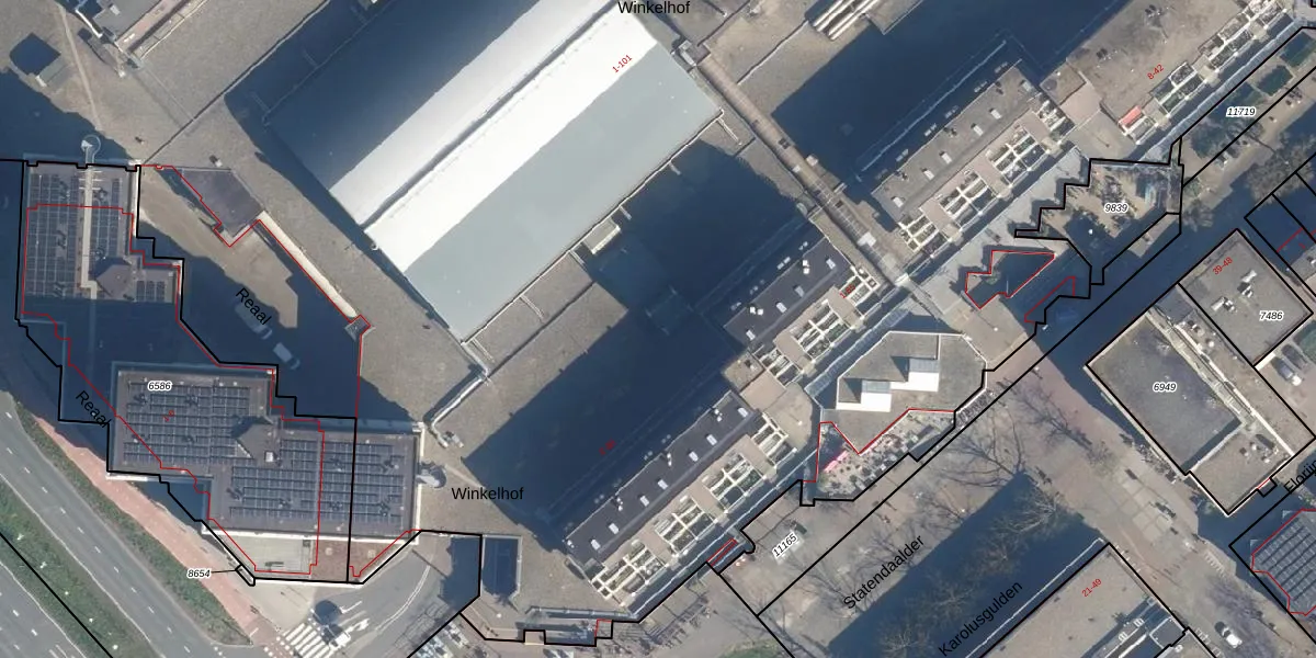 Het perceel waarop Winkelhof 20 staat heeft een oppervlakte van 2,4 ha. Dit is een zeer groot perceel. De perceeloppervlakte wordt geregistreerd door het Kadaster. Gedetailleerde informatie over de maten van dit perceel kunt u vinden in het rapport Kadastrale kaart met maatvoering van Winkelhof 20.
