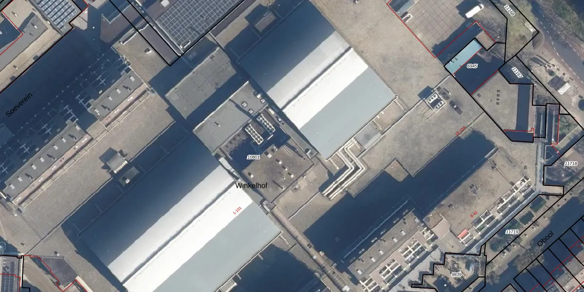Het perceel waarop Winkelhof 28 staat heeft een oppervlakte van 2,4 ha. Dit is een zeer groot perceel. De perceeloppervlakte wordt geregistreerd door het Kadaster. Gedetailleerde informatie over de maten van dit perceel kunt u vinden in het rapport Kadastrale kaart met maatvoering van Winkelhof 28.