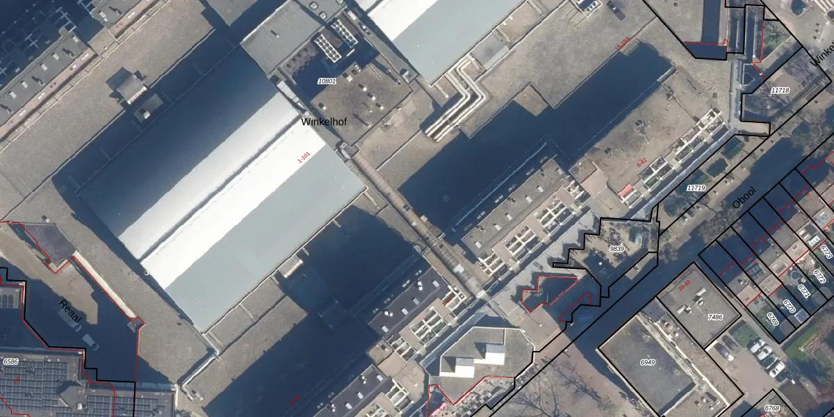 Het perceel waarop Winkelhof 6 staat heeft een oppervlakte van 2,4 ha. Dit is een zeer groot perceel. De perceeloppervlakte wordt geregistreerd door het Kadaster. Gedetailleerde informatie over de maten van dit perceel kunt u vinden in het rapport Kadastrale kaart met maatvoering van Winkelhof 6.