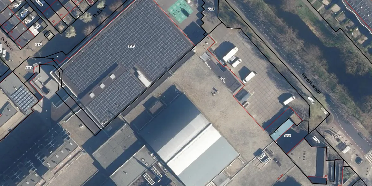 Het adres is gelegen op perceel 10801 in de sectie A en de kadastrale gemeente Leiderdorp. De kadastrale aanduiding is aldus LDD00-A-10801. De oppervlakte van het perceel is 2,4 ha. Dat is groter dan gemiddeld in Leiderdorp, waar de gemiddelde perceeloppervlakte op 1289,87 m² ligt. Het kleinste perceel in de kadastrale gemeente is 0 m² groot. De grootste perceeloppervlakte is 43,4 ha. Op het perceel liggen in totaal 189 adressen. De huidige grenzen van het perceel zijn digitaal in de Basisregistratie Kadaster (BRK) geregistreerd op 02-08-2021.