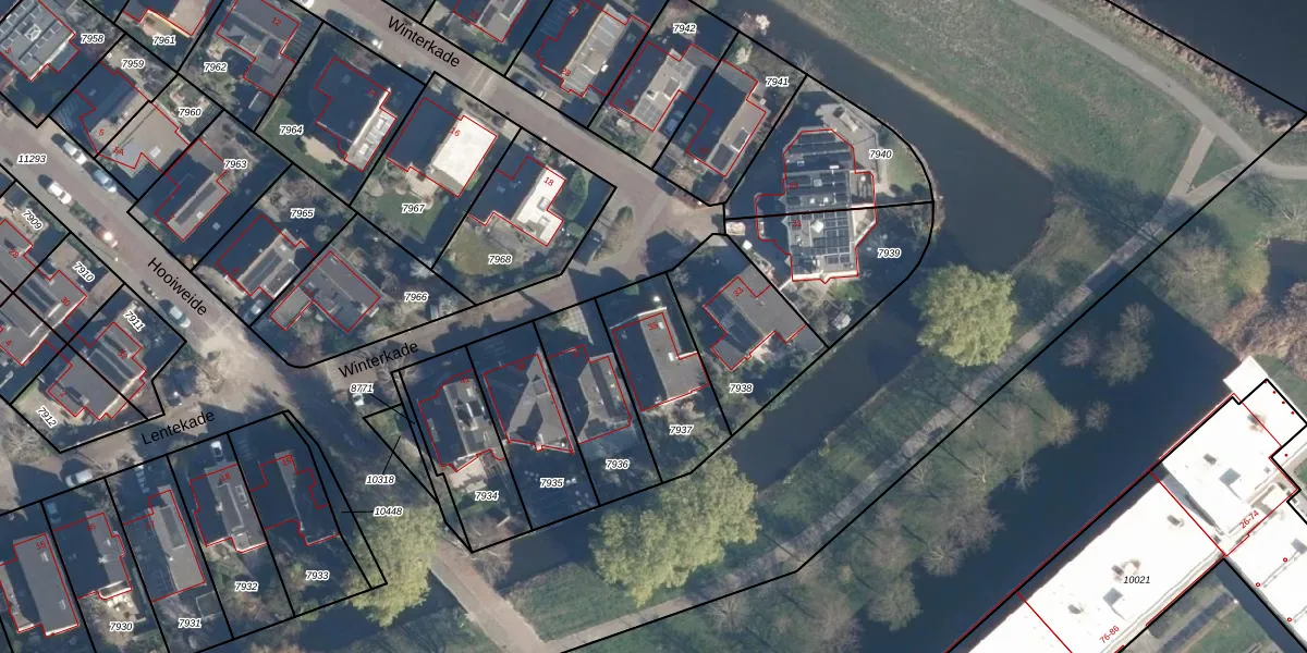 Winterkade 35 is gelegen op kadastraal perceel LDD00A7937. Deze kadastrale aanduiding is uniek en wordt gebruikt door het Kadaster om eigendomsrechten en andere zakelijke rechten vast te leggen. Het perceel maakt onderdeel uit van de kadastrale gemeente Leiderdorp.