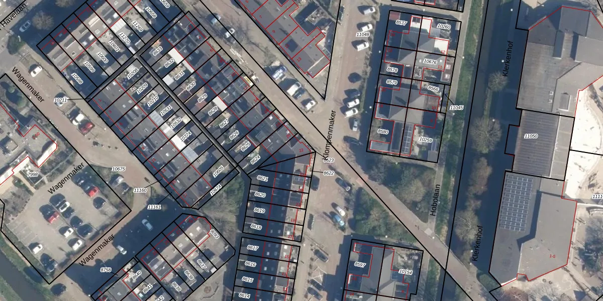 Gebruik de zoekbalk of klik op een perceel voor informatie over de adressen binnen dit perceel.