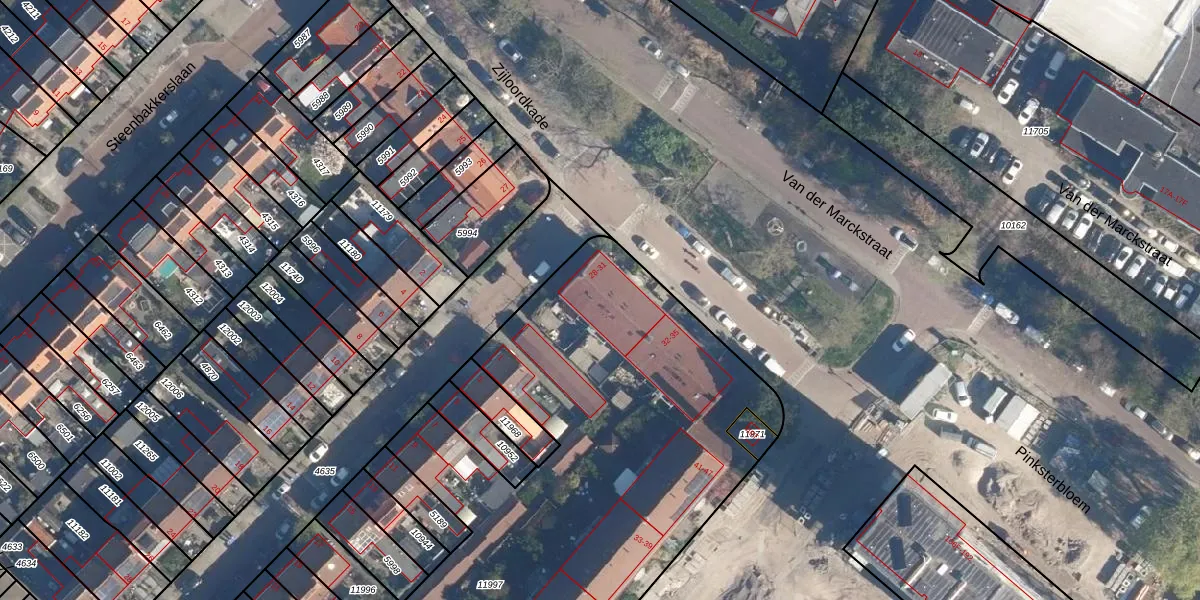 Het perceel waarop Zijloordkade 29 staat heeft een oppervlakte van 4319 m². Dit is een zeer groot perceel. De perceeloppervlakte wordt geregistreerd door het Kadaster. Gedetailleerde informatie over de maten van dit perceel kunt u vinden in het rapport Kadastrale kaart met maatvoering van Zijloordkade 29.