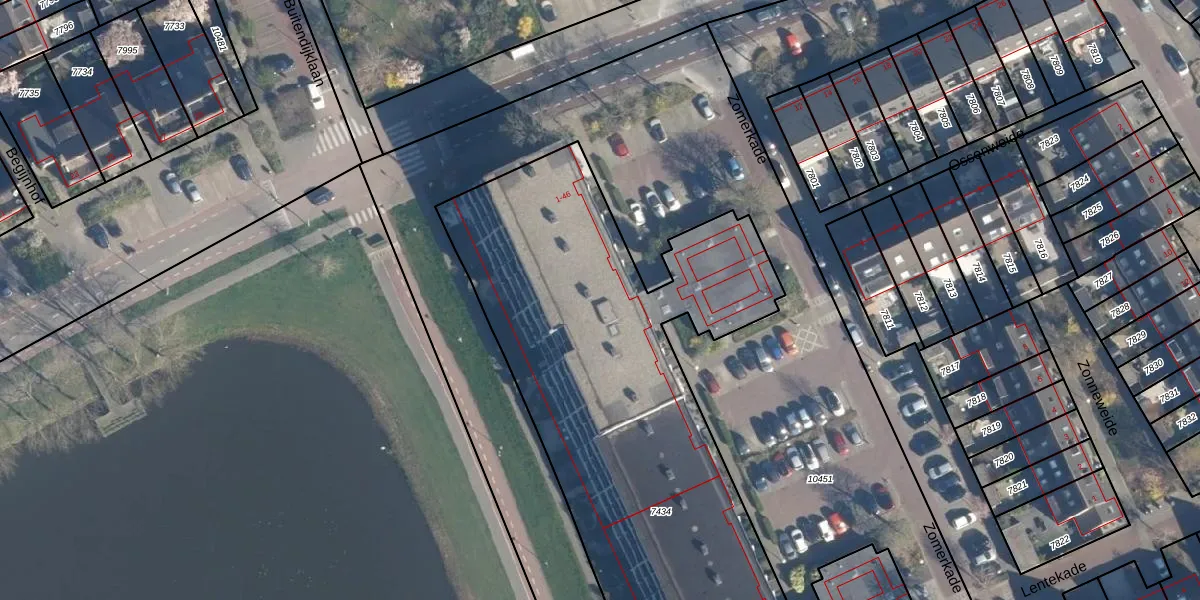 Het perceel waarop Zomerkade 20 staat heeft een oppervlakte van 3960 m². Dit is een zeer groot perceel. De perceeloppervlakte wordt geregistreerd door het Kadaster. Gedetailleerde informatie over de maten van dit perceel kunt u vinden in het rapport Kadastrale kaart met maatvoering van Zomerkade 20.