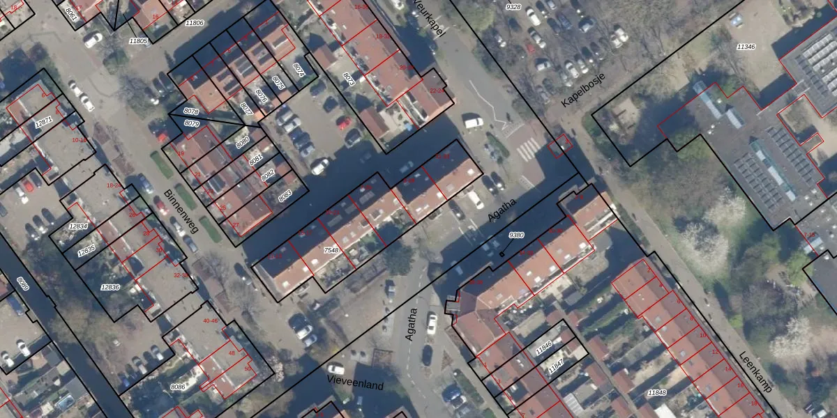 Agatha 27 is gelegen op kadastraal perceel VEU00B7548. Deze kadastrale aanduiding is uniek en wordt gebruikt door het Kadaster om eigendomsrechten en andere zakelijke rechten vast te leggen. Het perceel maakt onderdeel uit van de kadastrale gemeente Veur.